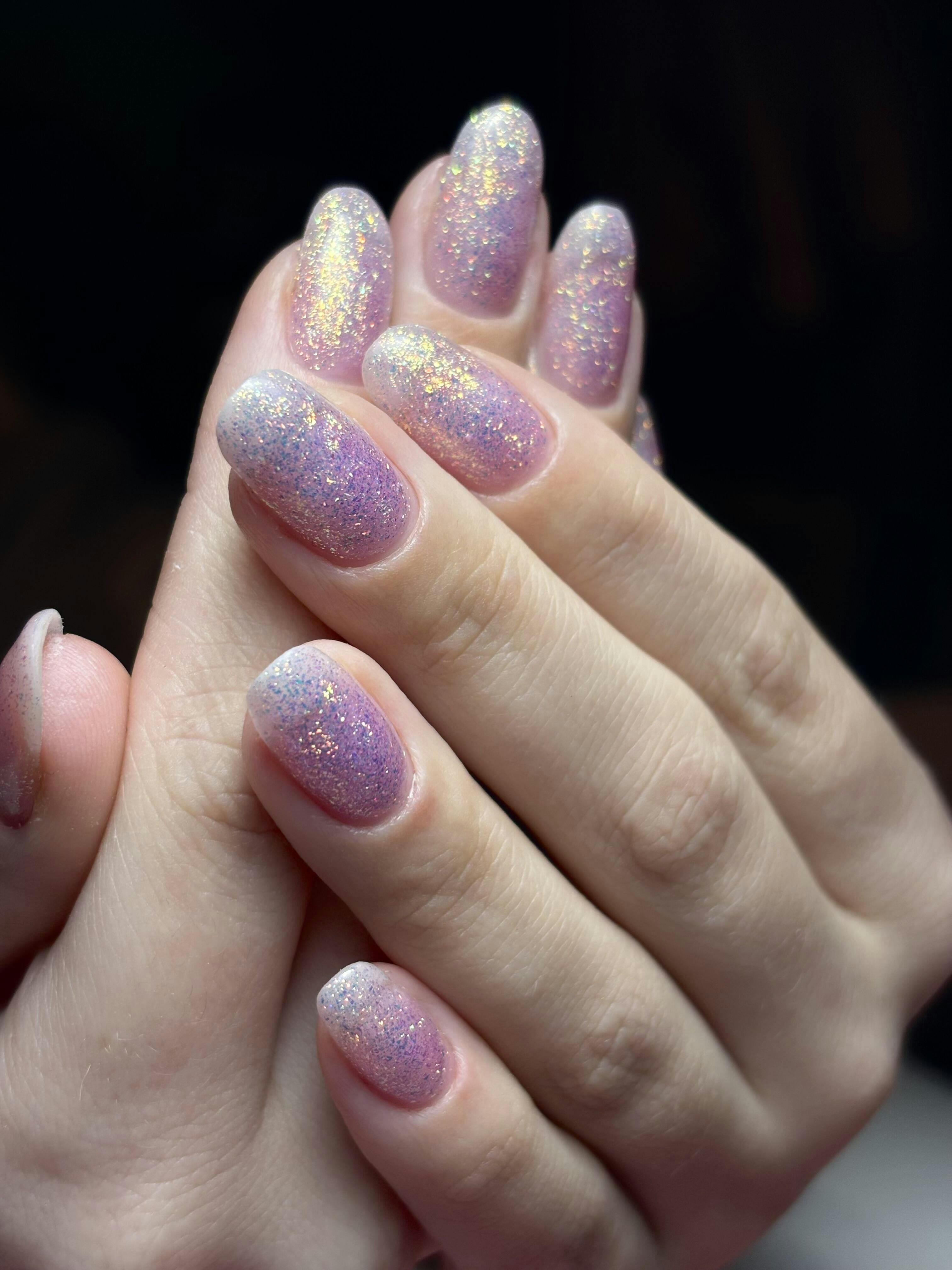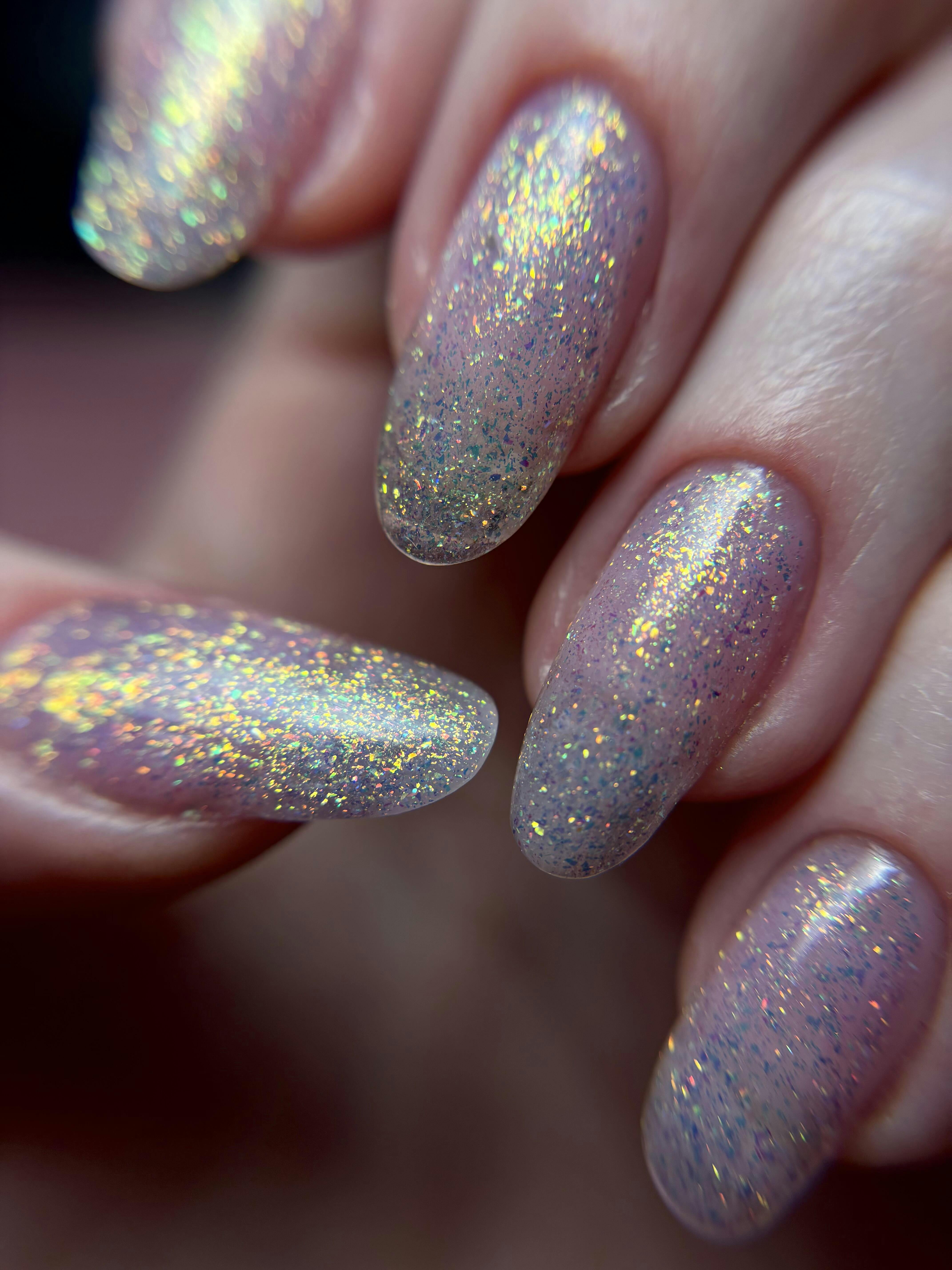 Violet dreams with iridescent shimmer. Unicorn captures the magic of every light it touches. This builder gel flashes pink, gold, and lilac tones for a multidimensional sparkle that is pure fantasy.🦄
